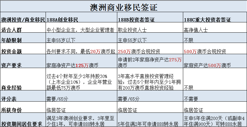 澳洲技術移民優先給在澳洲讀書想留下來的人,學歷、語言、年齡、工作經驗等限制多,這里不一一介紹了,有數據顯示,這么多年來只有20%的留學生拿到了澳洲PR,下面主要列舉下澳洲商業移民的幾大方式。