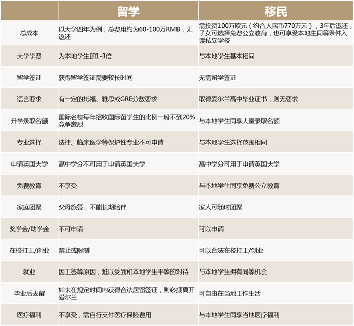 而對于以國際學生身份在海外接受教育的留學生來說,可能將會受到一些不公平的待遇。以愛爾蘭為例,選擇直接送孩子前往愛爾蘭留學,和先為孩子規劃愛爾蘭身份,再到當地接受教育兩種方式之間,存在著巨大的差異:
