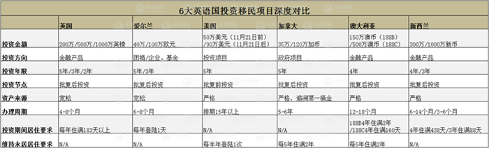 那么,全球6大英語國,各自的投資移民政策是怎樣的?哪國更適合您呢?小銘從移民家庭最關心的投資金額、投資期限、資金來源、辦理周期、居住要求等方面,詳細梳理了6大英語國投資移民項目深度對比表,供大家參考。