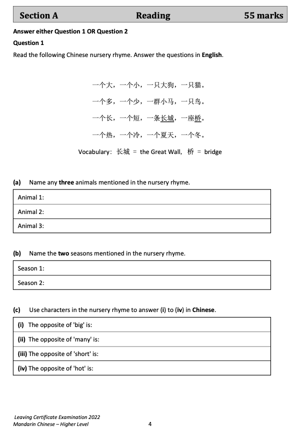 來,直接看愛爾蘭中文高考原卷吧