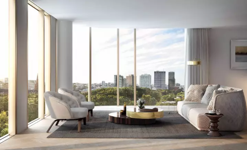 公寓大樓為92米高,采用26層布局,其中23層專門作住宅。King & Phillip為住戶提供由青銅色玻璃裝飾的天臺花園。