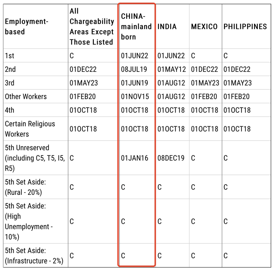 EB-3:排期為2019年6月1日,前進4個月