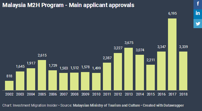 近日,馬來西亞旅游和文化部在其官網發布了第二家園簽證發放數據。