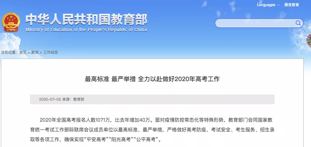 7月2日,教育部最新發文,要求以最高標準、最嚴舉措、全力以赴做好2020年高考工作,并專門對企圖冒名頂替者提出要堅決取消其入學資格并嚴處。