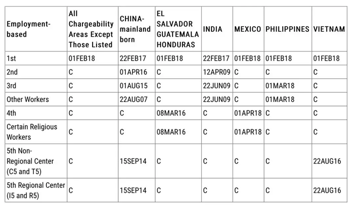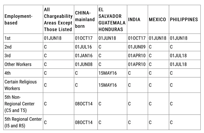 其中,EB-5排期,表A前進一周,表B前進到10月8日。EB-1排期未動,EB-2前進3個月,EB-3前進3周。